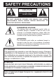 SAFETY PRECAUTIONS CAUTION RISK OF ELECTRIC SHOCK DO NOT OPEN CAUTION: TO REDUCE THE RISK OF ELECTRIC SHOCK, DO NOT REMOVE COVER (OR BACK). NO USERSERVICEABLE PARTS INSIDE. REFER SERVICING TO QUALIFIED SERVICE PERSONNEL.