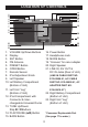 LOCATION OF CONTROLS 13 14 15 16 17 18 1 2 3 4 5 6 7 19 8 9 20 21 10 11 12 1. 2. 3. 4. 5. 6. 7. 8. 9. 10. 11. 12. 13. 14. 15. 22 23 VOLUME Up/Down Buttons Display SET Button FM Antenna PRESET Button OPEN Button Remote Sensor iPod Adjustment Knob Left Speaker Left Battery Compartment (Bottom of Unit) Left Unit “Leg” (Bottom of Unit) iPod Compartment with Connector & Interchangeable Universal Docks TUNE Up/Down/ Skip n / o Buttons PLAY/PAUSE (®p) Button BASS Button 16. 17. 18. 19. 20. 21.