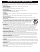REMOTE LOCATION OF CONTROLS (CONTINUED) 14 15 16 1 2 3 The remote has magnet at the back. It can placed on the refrigerate or other metal surface so it will not get misplaced. 17 18 19 20 21 4 5 6 7 22 23 24 25 26 27 28 29 30 31 32 33 8 9 10 11 12 13 1. AUX Button 2. Power Button 3. Direct Channel Selection/Number (0-9, –) Buttons 4. Repeat A-B Button 5. Channel Up/Skip (n) Button 6. Repeat Button 7. Channel Down/Skip (o) Button 8. Navigation √/Search m Button 9. OSD/INFO Button 10.