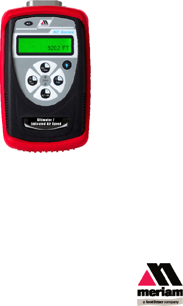 User’s Manual 9R122-A June, 2010 M203 Altimeter / Indicated Air Speed Tester USER’S MANUAL The Meriam Process Technologies (Meriam) M203 Altimeter / Indicated Air Speed Tester is a microprocessor based pressure sensing device used to measure pressure 0-900 millimeters (mm) Hg relative to absolute zero. The handheld is NIST traceable. When used in Pressure Measure Mode, pressure can be displayed in a variety of engineering units.