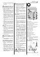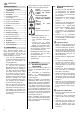 ENGLISH Caution! Risk of material damage. Table of Contents 1. Component and Parts / Standard Delivery........................9 2. Please Read First! .....................10 3. Safety .........................................10 Note: Additional information. 3.1 Specified Conditions of Use ........10 3.2 General Safety Instructions.........10 3.3 Symbols on the machine.............11 Be alert. Know what you are doing. Set out to work with reason.