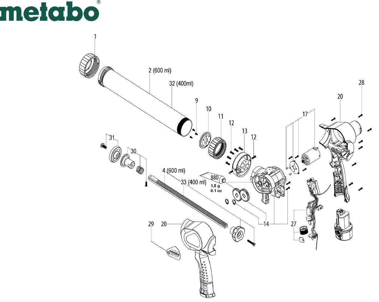 KPA 10.8 600 Позиция 1 2 4 9 10 11 12 13 14 17 20 24 27 28 29 30 31 32 33 Количество 1 1 1 3 1 1 7 1 1 1 1 1 1 8 1 1 1 1 1 Номер для заказа 344099240 315418070 341148470 341704730 315418080 315418090 341704760 343432050 316051060 317004180 343432060 343409770 343409780 341704750 338057340 341210500 343433240 315418210 341161440 Описание Cover front Heat shrink tube 600 ml. Rack compl. Fillister head screw,M 3,5 x 10 ADAPTOR RING Connection piece Screw,TP 4x14 TX15 Cover Gear-box compl. Motor w.
