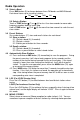 Radio Operation 1.0 Select a Band Press BND button (5) to change between three FM bands and AM/LW bands. Each band stores up to six preset stations. FMI FMII FMIII AM 2.0 Select a Station Touch a TUNE button (7) or (6) for less than two seconds to move radio frequency number down or up on step. Hold a TUNE button (7) or (6) for more than two seconds to seek the next clear station. 3.0 Preset Stations Six number buttons (17) store and recall stations for each band. 3.1 Store a station: 3.1.