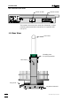 1.1 Side View 1 Overview 1.1 Side View Line frame Splash protection Lift Line sleeve Rack Tower Stirrer rail Plug cover Connectors Safety note: Never operate the 760 Sample Changer without splash protection and plug cover being mounted. The plug cover prevents any contamination of the connectors, caused by spilled solvents or chemicals.
