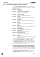 5 Interfaces Event command (2nd column) Setting the event output lines 1…7. Selection: 0 (line off, inactive, open) 1 (line on, active, 0 V) p (pulse, pulse length 150 ms) * (leave line in current status) For entry of the first value, enter 1, 0, p or *. For entry of the other values, move the cursor in front of the value to be changed and enter 1, 0, p or *. Add new remote command. Delete selected remote command.