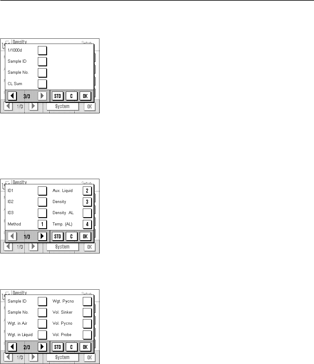 Factory setting: The “Method”, “Auxiliary liquid”, “Density” and “Temp. (AL)”