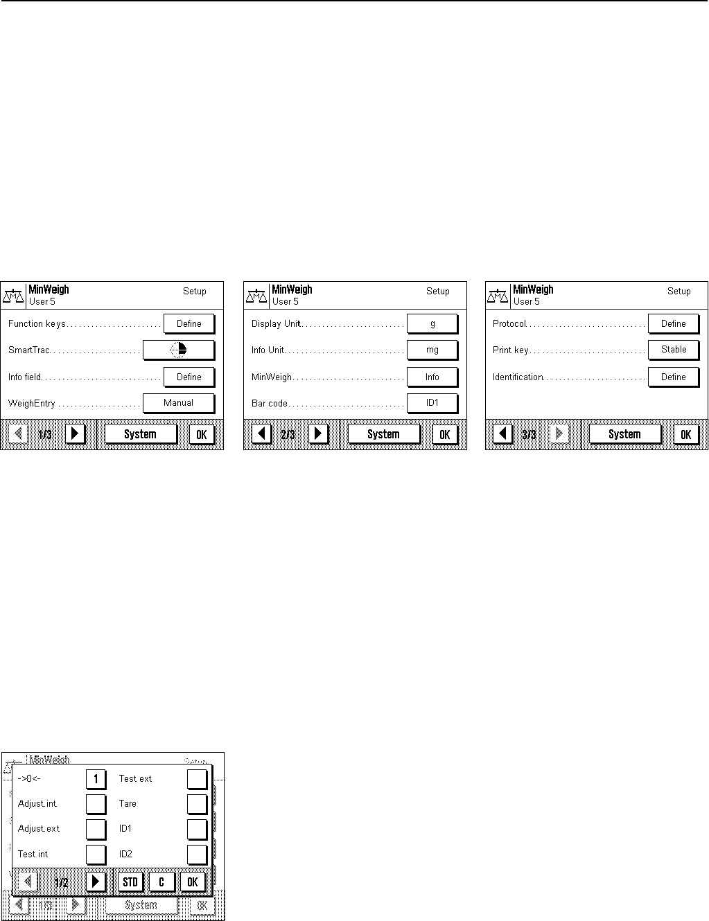 The specific settings for the “Minimum Weighing” application are described in detail in the sections that follow below.