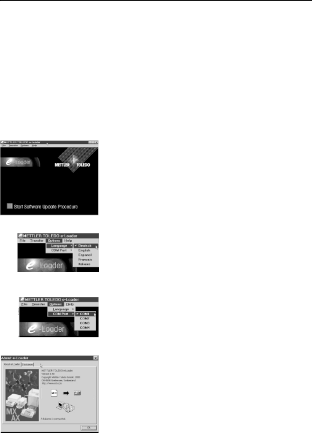 (in the example at left, the e-Loader is confirming that a balance is connected).