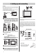 1. Setting up and connecting Setting up When selecting a suitable place for the TV, be sure that no bright light or sunlight falls on the screen. Light may cause reflections and impair the brilliance of the image. The best viewing distance is five times the picture tube diagonal, e.g. about 3.5 m for TV sets with a 70 cm screen. 5 x cm cm y y Connecting the aerial TV sets require adequate ventilation.