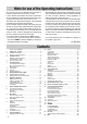 Hints for use of the Operating Instructions Do not be put off by the size of the Operating Instructions. Initially, it is sufficient to read the instructions in Sections 1.1, 2 and 4. In order to familiarise yourself with the TV set and its many functions, we recommend that you read the Operating Instructions step by step, carrying out the described actions on your TV set as you do so. This method, often called "learning by doing", is the easiest way of learning how to execute the various functions.