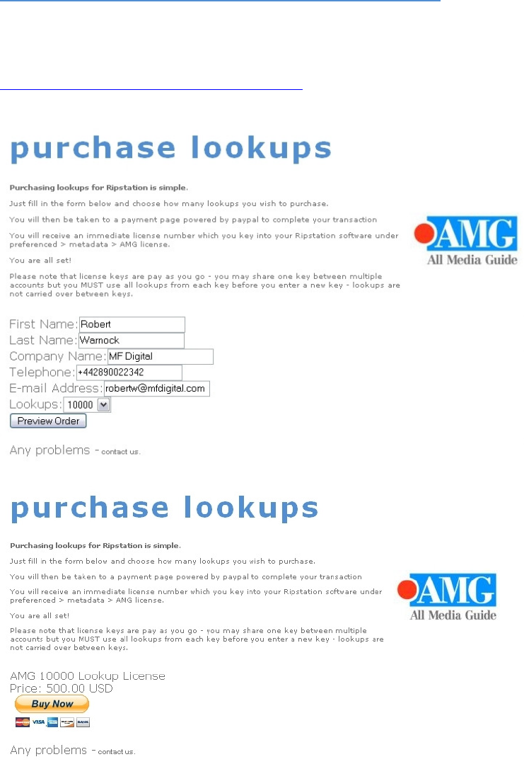 To receive an AMG key to enable AMG metadata in Ripstation you will need to purchase look ups