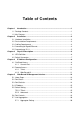 Table of Contents Chapter 1 Introduction ..................................................................................................1 1.1 Package Contents ..............................................................................................1 1.2 Key Features ......................................................................................................1 Chapter 2 Installation ....................................................................................................3 2.