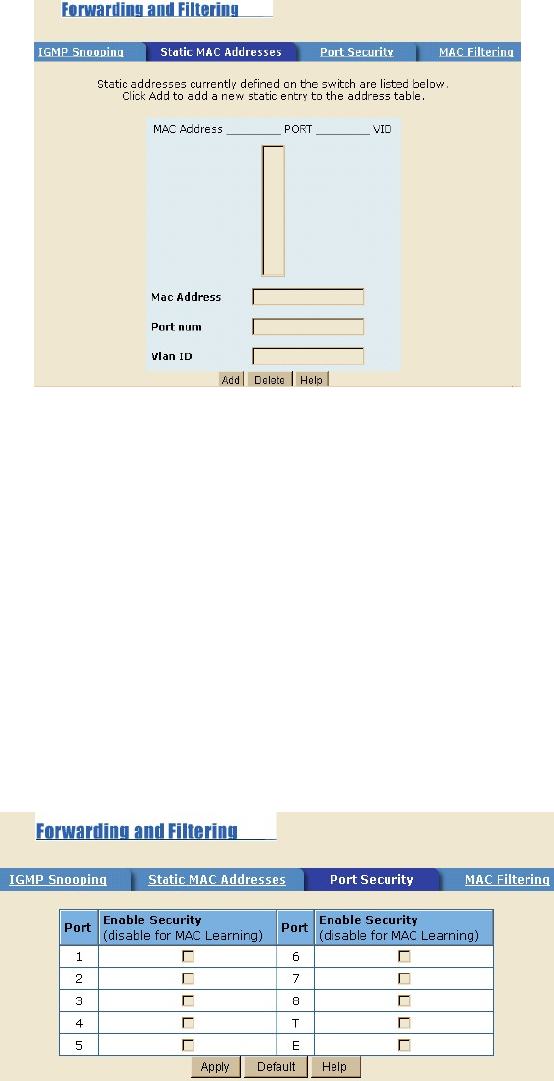 MAC address filtering allows the SP3508A to drop unwanted traffic. Traffic is