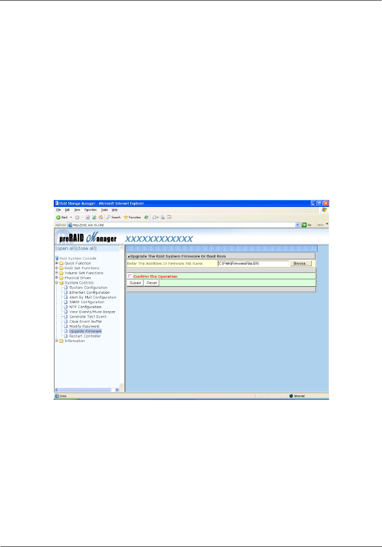 ware link. The Upgrade The Raid System Firmware screen appears.