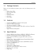 Table of Contents Chapter 1 Introduction............................................................................. 1 1.1 1.2 1.3 1.4 Package Contents .......................................................................................... 2 Features ......................................................................................................... 2 Specifications................................................................................................ 2 Physical Description ..............