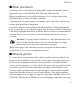 Taking care of your device • Do not store the device in hot areas. High temperatures can shorten the life of electronic devices, damage batteries, and warp or melt certain plastics. • Do not store the device in high or cold temperatures. High temperatures can shorten the life of electronic devices, damage batteries, and warp or melt certain plastics. When the device warms to its normal temperature from a cold temperature, moisture can form inside the device and damage electronic circuit boards.
