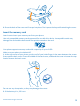 3. Push the memory card into the memory card slot until it locks into place. 4. Line up the battery contacts, and replace the battery. 5. Press the bottom edge of the back cover against the bottom edge of your phone. 6. Press the back of the cover until it snaps into place. Don't press the keys while attaching the cover. © 2013 Nokia. All rights reserved.