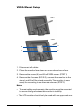 VESA Mount Setup STEP 1 STEP 2 B D C E 1. Disconnect all cables. 2. Place the monitor face down on a non-abrasive surface. 3. Remove the screw (A) and lift off VESA cover. (STEP 1) 4. Remove the 4 screws (B.C.D.E), connect the monitor to the stand, and lift off the stand assembly. The monitor is now ready for mounting in an alternate manner. (STEP 2) Note: • To meet safety requirements, the monitor must be mounted to an arm that guarantees the monitor's stability.