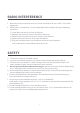 RADIO INTERFERENCE 1. Operation of the microwave oven may cause interference to your radio, TV or similar equipment. 2. When there is interference, it may be reduced or eliminated by taking the following measures: 1) Clean door and sealing surface of the oven. 2) Reorient the receiving antenna of radio or television. 3) Relocate the microwave oven with respect to the receiver. 4) Move the microwave oven away from the receiver.