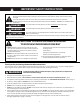 GROUNDING INSTRUCTIONS WARNING WARNING Electric Shock Hazard: Improper use of the grounding can result in electric shock. 1. A short power-supply cord is provided to reduce the risks resul�ng from becoming entangled in or tripping over a longer cord. 2. Longer cord sets, or extension cords, are not recommended. 3. If a long cord or extension cord is used: (a) The marked electrical ra�ng of the cord set or extension cord should be at least as great as the electrical ra�ng of the appliance.