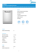49dBA, 12 place settings with cutlery basket, adjustable top basket, Delay Start Function