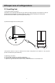 2 Proper use of refrigerators 2.1 Levelling feet 1) Precautions before operation Information in the Instruction Manual is only for reference. Before operation of accessories, it shall be ensured that the refrigerator is disconnected from power. Before adjusting the leveling feet, precautions shall be taken to prevent any personal injury. 2) Schematic diagram of the levelling feet (T he picture above is only for reference.