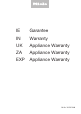 IE Garantee IN Warranty UK Appliance Warranty ZA Appliance Warranty EXP Appliance Warranty M-Nr.