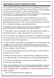 IMPORTANT SAFETY INSTRUCTIONS Use This wine conditioning unit is intended for use in domestic households and similar residential environments such as – staff kitchen areas in shops, offices and other working environments – farm houses and by clients in hotels, motels and other residential type environments – bed and breakfast type environments – catering and similar non-retail applications. This wine conditioning is not intended for use outdoors, in damp environments or in places exposed to rain.
