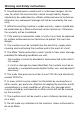 Warning and Safety instructions Correct use Do not install the washing machine in a room where there is a risk of frost. Frozen hoses may burst or split. The reliability of the electronic control unit may be impaired at temperatures below freezing point. Before using the machine for the first time, check that the transit bars at the rear of the machine have been removed (see “Installation - Removing the transit bars”).