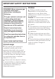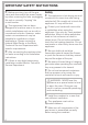IMPORTANT SAFETY INSTRUCTIONS Technical safety ~ Installation, repair and maintenance work should be performed by a Miele authorized service technician. Work by unqualified persons could be dangerous and may void the warranty. ~ Before installing the combiset, check for externally visible damage. Do not operate a damaged appliance. A damaged gas combiset is a hazard.