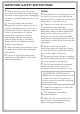 IMPORTANT SAFETY INSTRUCTIONS ~ If there is a drawer directly underneath the appliance without a wooden base in between, ensure that no aerosols, combustible liquids or other easily flammable materials are kept in it. If cutlery inserts are to be placed in the drawer, they must be made of a heat-resistant material. ~ Make certain that the power cords of small appliances do not come in contact with the appliance. The insulation of the cable could become damaged.