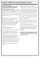 SAFETY INSTRUCTIONS FOR INSTALLATION Note to the installer: Please leave this instruction book with the consumer for the local electrical inspector’s use. ~ This appliance has not been designed for maritime use or for use in mobile installations such as recreational vehicles or aircraft. However, under certain conditions it may be possible for installation in these applications. Please contact the Miele Technical Service Department with specific requirements.