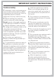 IMPORTANT SAFETY INSTRUCTIONS ~ If there is a drawer directly underneath the appliance without a wooden base in between, ensure that no aerosols, combustible liquids or other easily flammable materials are kept in it. If cutlery inserts are to be placed in the drawer, they must be made of a heat-resistant material. ~ Make certain that the power cords of small appliances do not come in contact with the appliance. The insulation of the cable could become damaged.