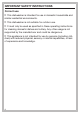 IMPORTANT SAFETY INSTRUCTIONS SAVE THESE INSTRUCTIONS AND PASS THEM ON TO ANY FUTURE USER FCC Declaration of Conformity These devices comply with FCC Rules Part 15. This equipment has been tested and found to be in compliance with the limits for a Class B digital device, pursuant to Part 15 of the FCC Rules of Operation and is subject to the following conditions: These devices may not cause harmful interference.
