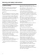 After Sales / Guarantee In the event of a fault which you cannot correct yourself, or if the appliance is under guarantee, please contact: – your Miele Dealer or Chartered Agent or – the Miele Service Department (see back cover for contact details). When contacting your Dealer/Chartered Agent or Miele, please quote the model and serial number of your appliance. This information is given on the data plate inside your appliance.