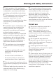 After Sales / Guarantee In the event of a fault which you cannot correct yourself, or if the appliance is under guarantee, please contact: – your Miele Dealer or Chartered Agent or – the Miele Service Department (see back cover for contact details). When contacting your Dealer/Chartered Agent or Miele, please quote the model and serial number of your appliance. This information is given on the data plate inside your appliance.