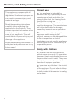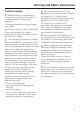 Warning and Safety Instructions Technical safety ~ Before setting up the appliance, check it for any external damage. Do not install and use a damaged appliance. A damaged appliance may endanger your safety! ~ If the connection cable is damaged it must be replaced by a Miele approved service technician to protect the user from danger. ~ This appliance contains the coolant Isobutane (R600a), a natural gas that is environmentally friendly but flammable.