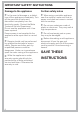 IMPORTANT SAFETY INSTRUCTIONS Correct usage ~ Do not operate the cooktop until it is properly installed in the countertop. ~ This appliance is intended for residential cooking only. ~ Do not use pans that extend past the burner grate. Using larger pans may cause the flames to spread out and damage the surrounding countertop or other countertop appliances. ~ Use the appliance only for its intended purpose.