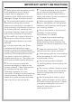 IMPORTANT SAFETY INSTRUCTIONS Safety ~ DO NOT TOUCH THE COOKING AREA OR THE VICINITY AROUND THE COOKING AREA - During operation, the cooking area and its surroundings will get hot and can cause burns. When the cooktop is shut off, the surface may remain hot enough to cause harm, even though the glow is not visible through the dark glass.