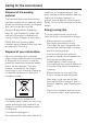 Caring for the environment Disposal of the packing material The transport and protective packing has been selected from materials which are environmentally friendly for disposal and can normally be recycled. Ensure that any plastic wrappings, bags etc. are disposed of safely and kept out of the reach of babies and young children. Danger of suffocation! Rather than just throwing these materials away, please ensure that they are offered for recycling.