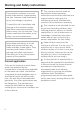 After sales service In the event of any faults which you cannot remedy yourself, please contact: – your Miele dealer, or – the Miele Service Department (see back cover for contact details). When contacting your Dealer or the Service Department, please quote the model and serial number of your machine, both of which are shown on the data plate visible above the porthole glass when the drum door is open.