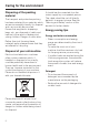 Caring for the environment Disposing of the packing material The transport and protective packing has been selected from materials which are environmentally friendly for disposal and can normally be recycled. Ensure that any plastic wrappings, bags, etc. are disposed of safely and kept out of the reach of babies and young children. Danger of suffocation. Rather than just throwing these materials away, please ensure that they are offered for recycling.