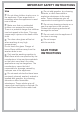 IMPORTANT SAFETY INSTRUCTIONS Use ~ Do not allow children to play on or in the appliance. Close supervision is necessary when the appliance is used near children. ~ Make sure that no unattended children can access the machine. There is a potential danger that children can be trapped in the drum. This may cause major injuries or the death of the child. ~ The drum door glass will be hot when washing at very high temperatures. Do not touch the glass.