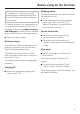 Before using for the first time Shipping struts The appliance must be correctly installed and connected before the first use. Please see the "Installation instructions." For safety reasons, it is not possible to run a spin cycle before the first use. A program must be run without laundry and detergent to flush out any residual water from the factory testing process. ^ Open the water supply. Welcome screen The Welcome screen shows when the washer is turned on for the first time: "Miele Professional Welcome".