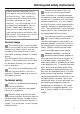 Warning and safety instructions For safety reasons, do not use an extension cable. There is a danger of overheating. In the event of a fault, or for cleaning purposes, the machine is only completely isolated from the electricity supply when: – the plug is withdrawn, or – it is switched off at the mains, or – the mains fuse is withdrawn. Faulty components must only be exchanged for Miele original spare parts. Only when these parts are fitted can the safety standards of the machine be guaranteed.
