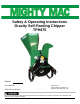 • Your MIGHTY MAC GRAVITY SELF-FEEDING CHIPPER can process dry or green wood up to 4.75" in diameter. • The Chipper will self-feed the wood once it contacts the knife edge so forcing the branches into the Hopper is not necessary if the knife is sharp. • Green wood will process quicker and easier than dry wood. • Softwood processes easier than hardwood. • Your operator experience will teach you how different types of wood will chip and how fast you can process them.