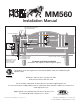 MM560 Installation Manual Gate Swings Evenly and Freely Hung Firmly and Plumb Receiver Control Box with Battery Warning Sign Post Bracket Single Gate Opener Horizontal Support 120 Volt indoor Transformer Gate Bracket Closed Position Stop Plate Power Cable (surge protector not supplied) Run 1000' (max.) of low voltage wire to control box from transformer (wire not included). PVC conduit (not included) to protect wire from lawn mowers and weed eaters.