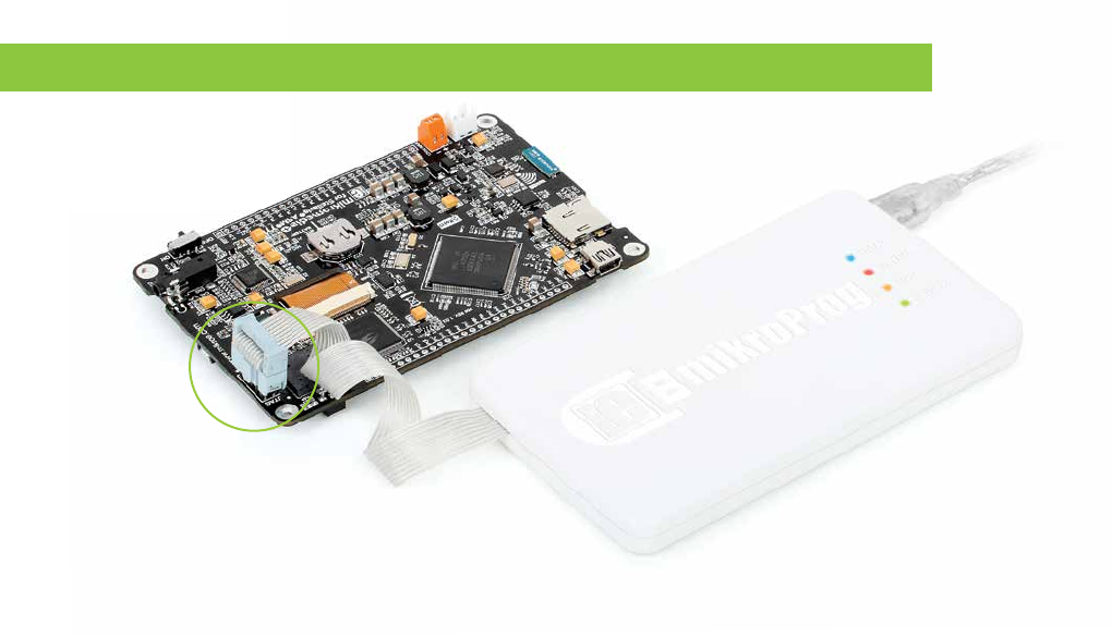 software. The external programmer is connected to the development system via JTAG connector, Figure 3-9. mikroProg