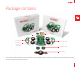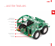 Package contains hoizontal bar 2 x side panels LiPo battery 4 x removable wheels the main panel with circuitry, motors, lights 3 x mikroBUS™ plates Mini USB cable The kit contains 1) the main panel with circuitry, motors, lights, and the mikromedia connector; 2) a pair of battery holder tabs; 3) two side panels and a horizontal bar; 4) three mikroBUS™ plates; and 5) four wheels.