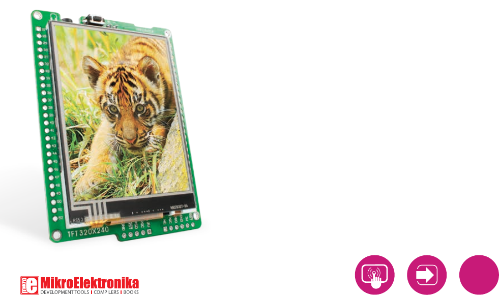 7. Touch Screen The development system features a TFT 320x240 display covered with a resistive touch panel. Together they form a functional unit called a touch screen. It enables data to be entered and displayed at the same time. The TFT display is capable of showing graphics in 262.144 different colors.